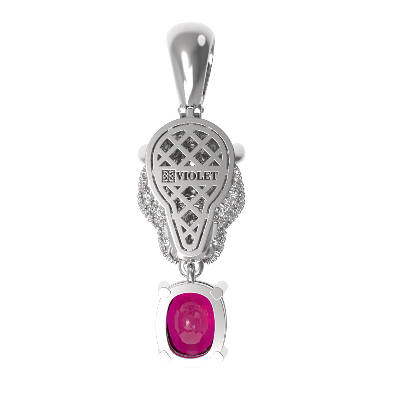 Подвеска из белого золота c бриллиантами, рубином и изумрудом