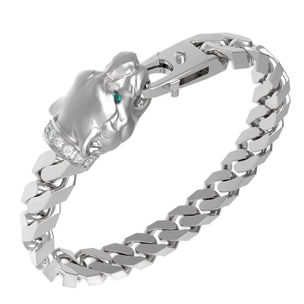 Браслет из белого золота c бриллиантами и изумрудом