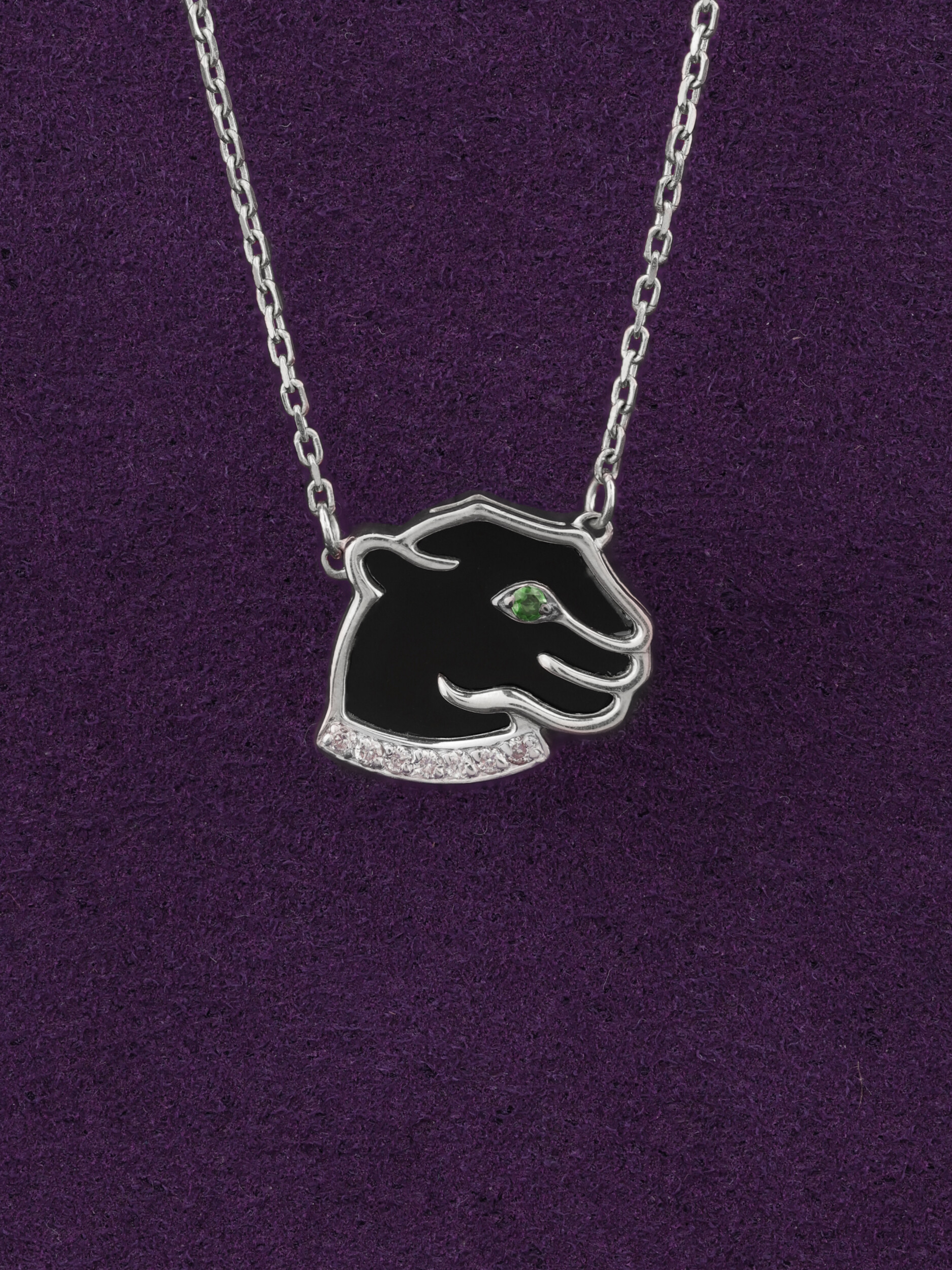 Колье из белого золота c бриллиантами, изумрудом и ониксом