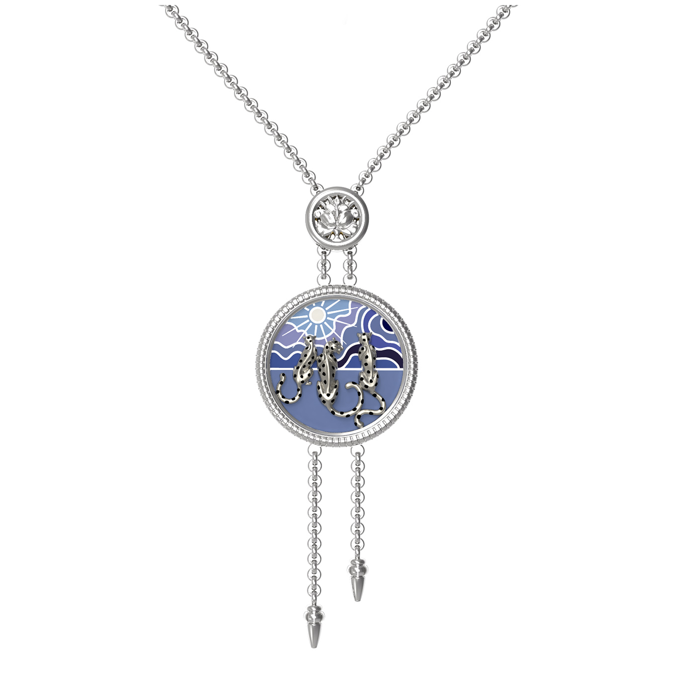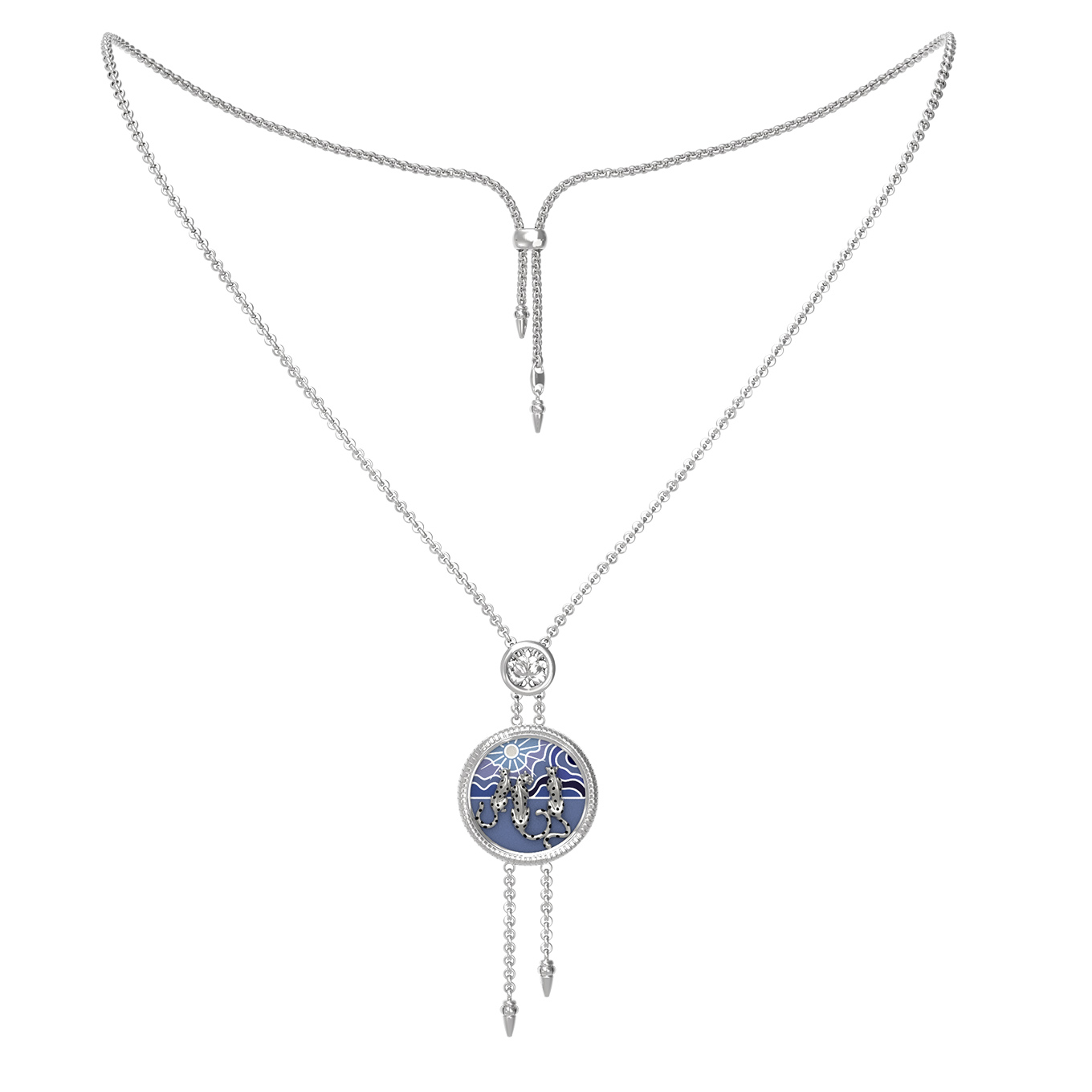 Колье из белого золота c эмаль