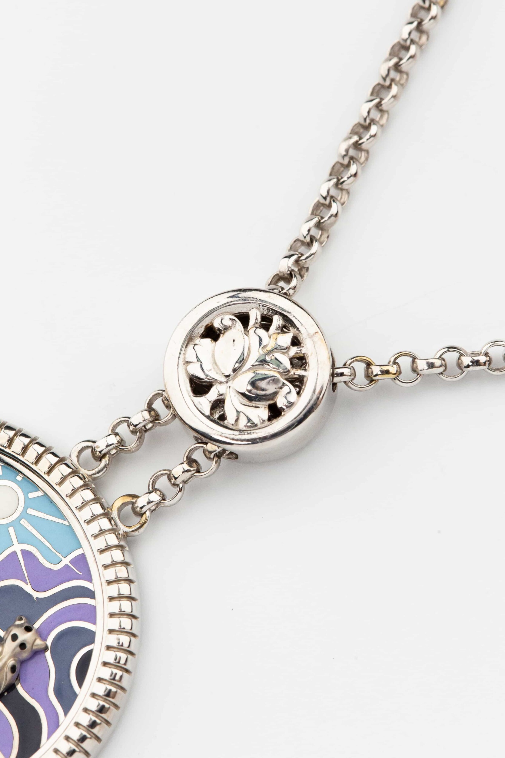 Колье из белого золота c эмаль