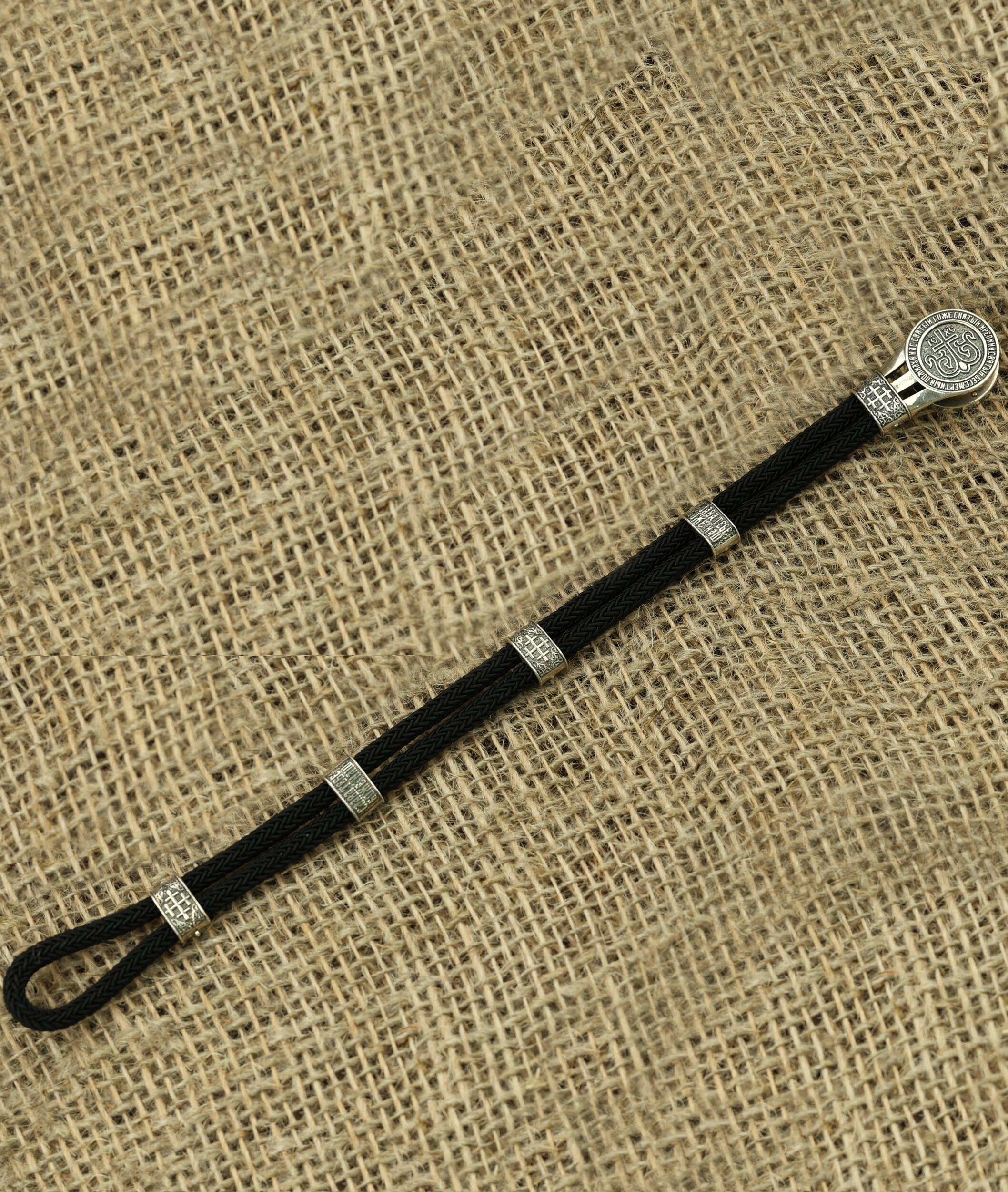 Браслет из серебра и золота c ониксом и шёлковым шнурком