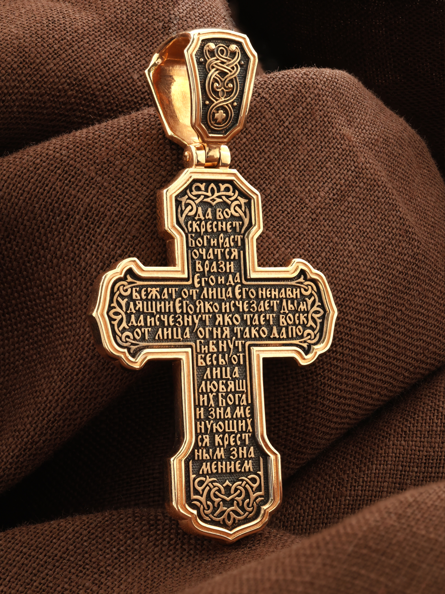 На оборотной стороне креста написана молитва Честному Кресту Господню: «Да воскреснет Бог, и расточатся врази Его, и да бежат от лица Его ненавидящии Его. Яко исчезает дым, да исчезнут; яко тает воск от лица огня, тако да погибнут беси от лица любящих Бога и знаменующихся крестным знамением…».