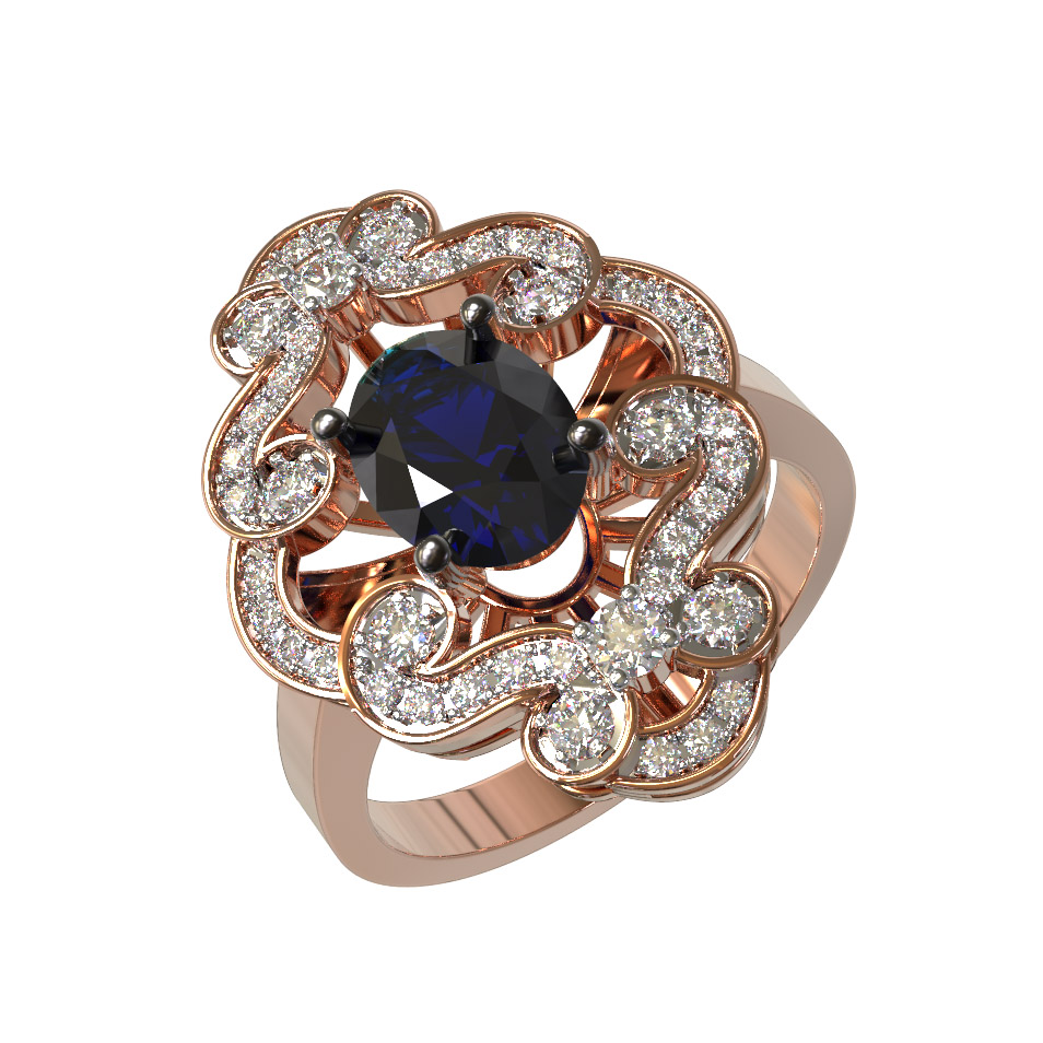 Кольцо из золота c бриллиантами и сапфиром