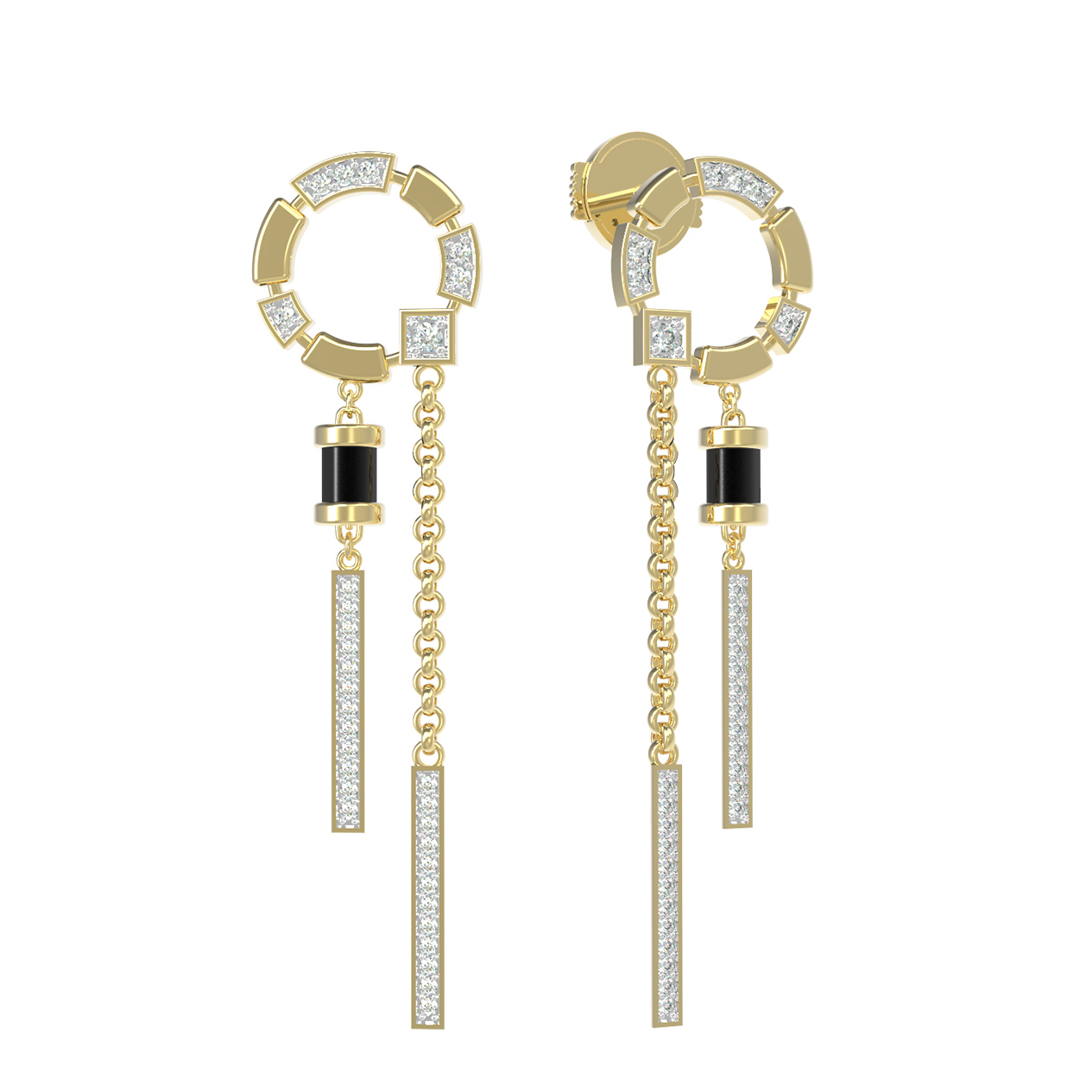 Серьги из лимонного золота c бриллиантами и ониксом