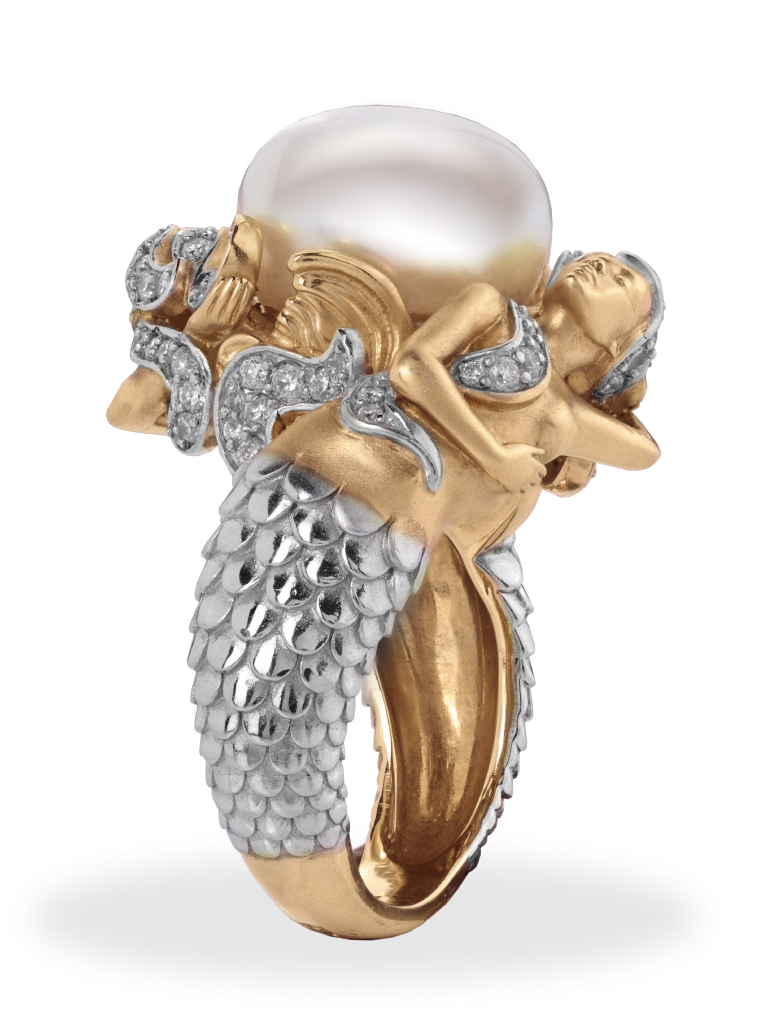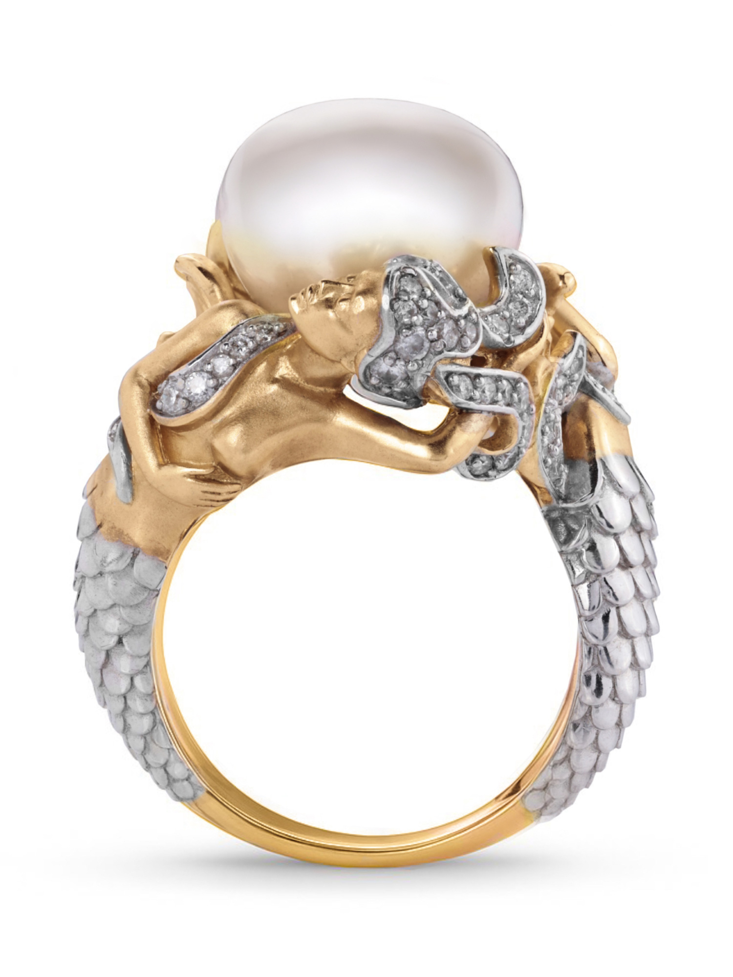 Кольцо из золота c бриллиантами и жемчугом