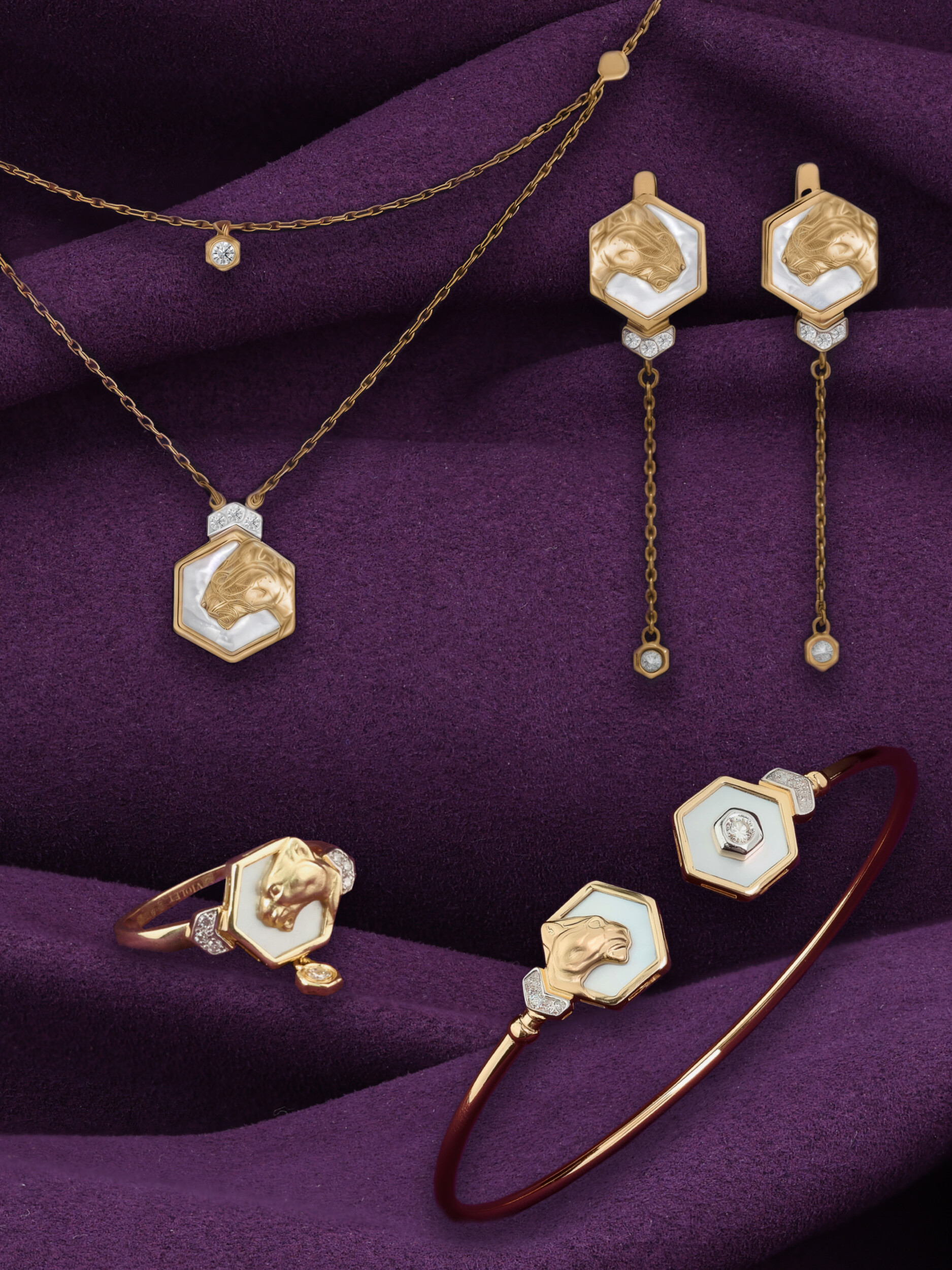 Браслет из золота c бриллиантами и перламутром