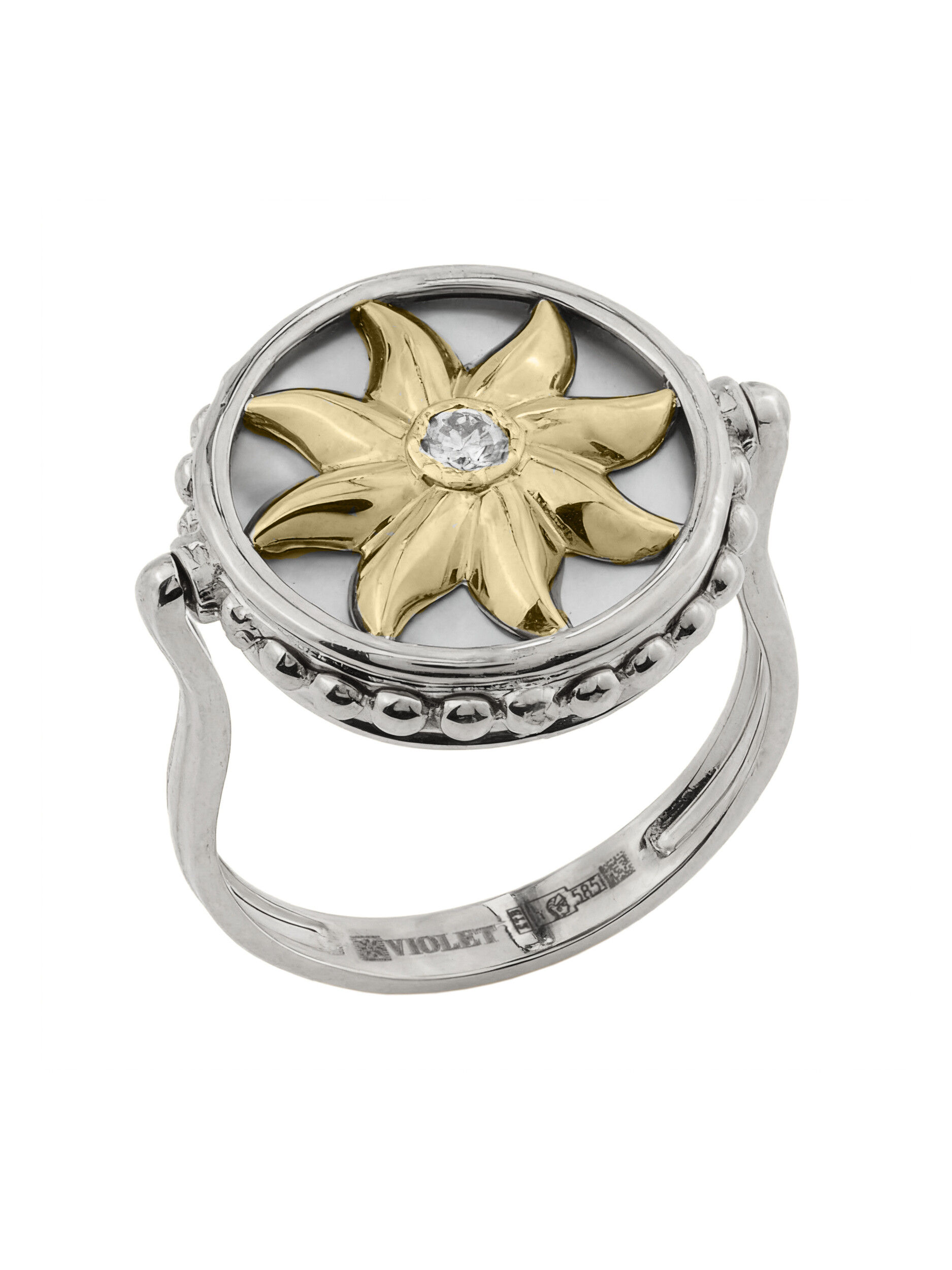 Кольцо из белого золота c бриллиантами, ониксом и перламутром