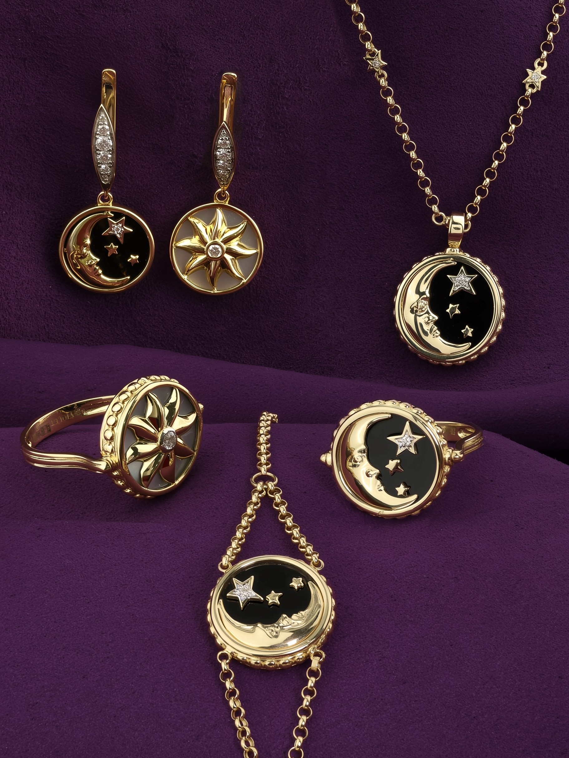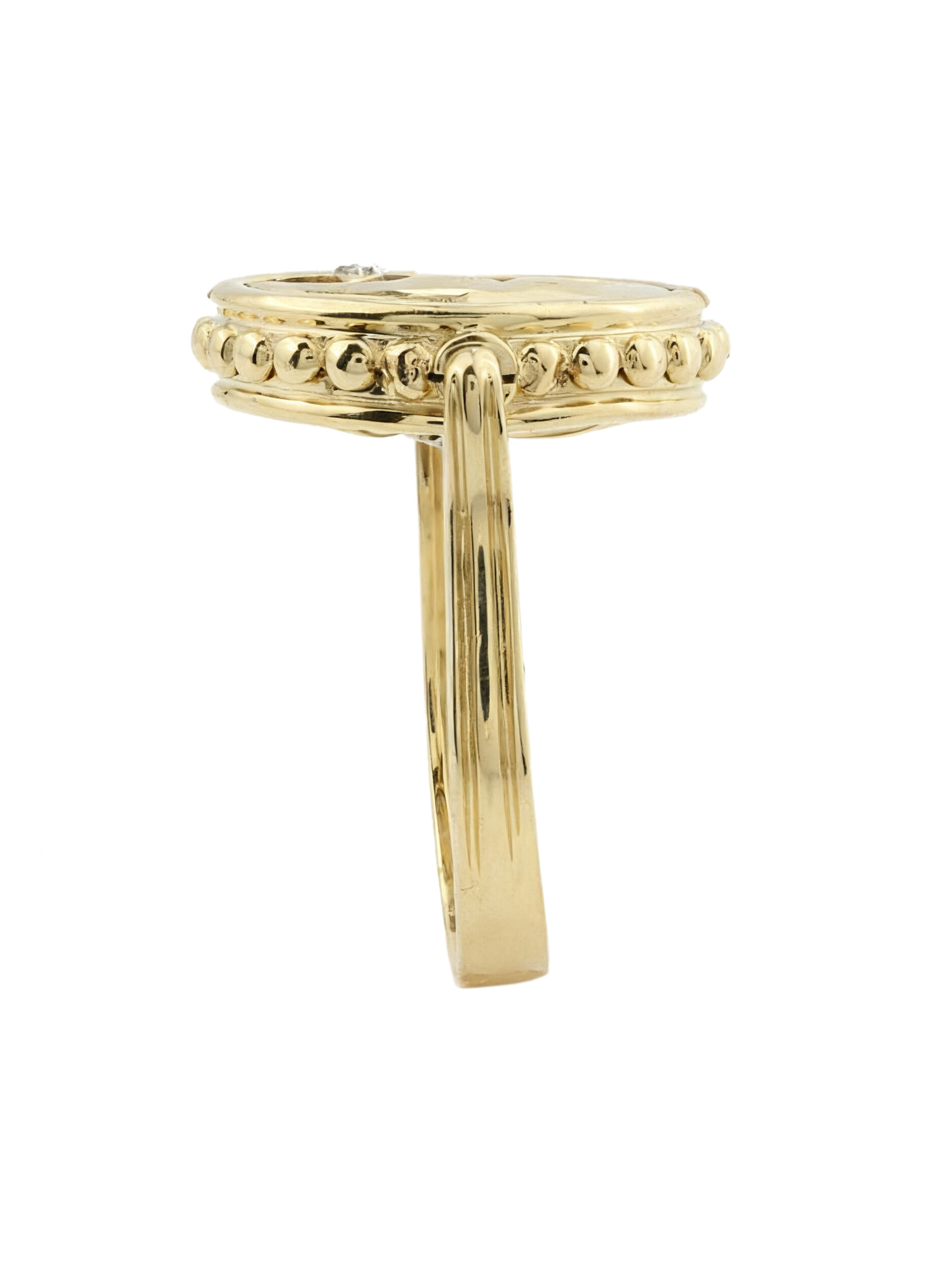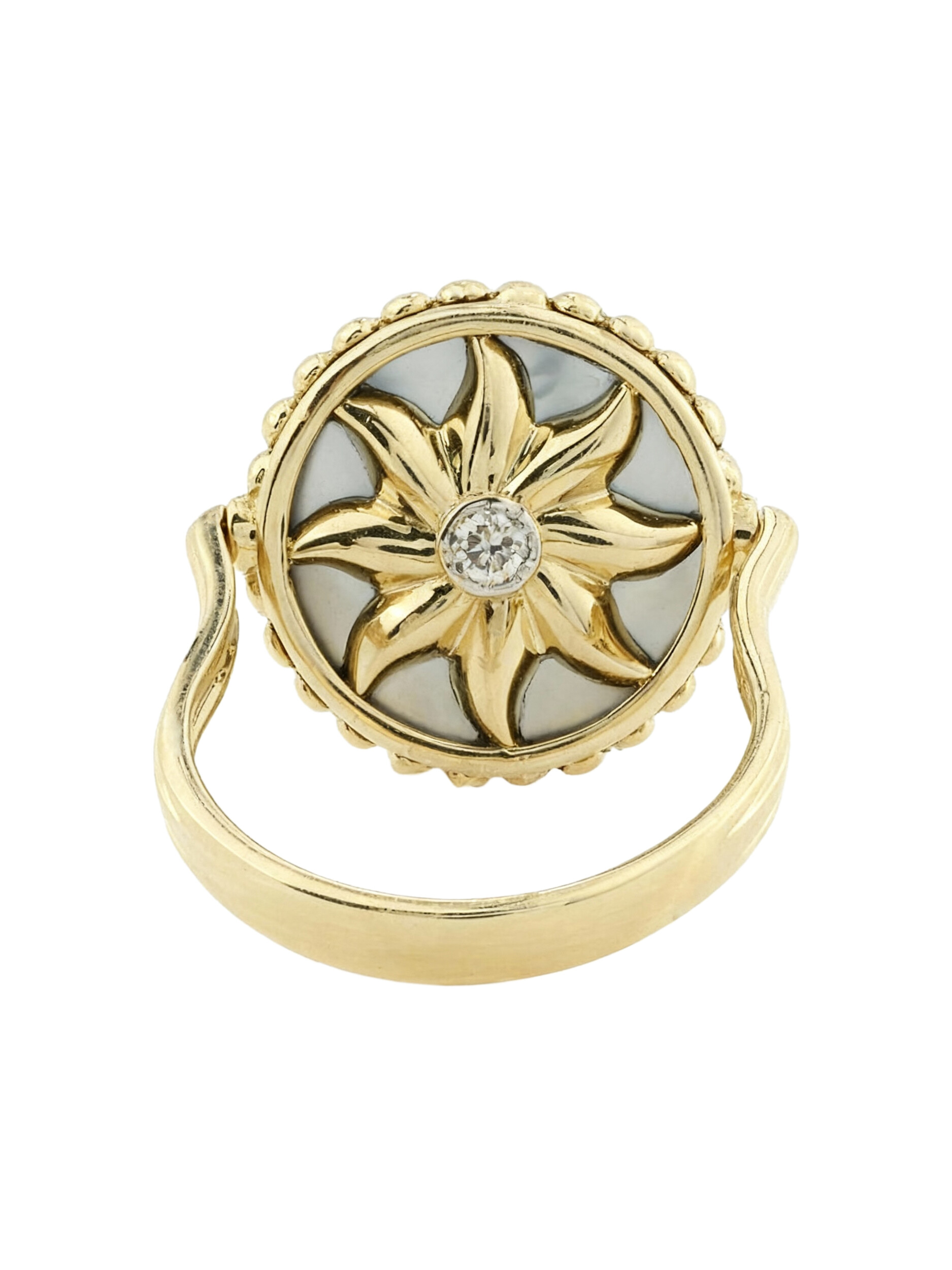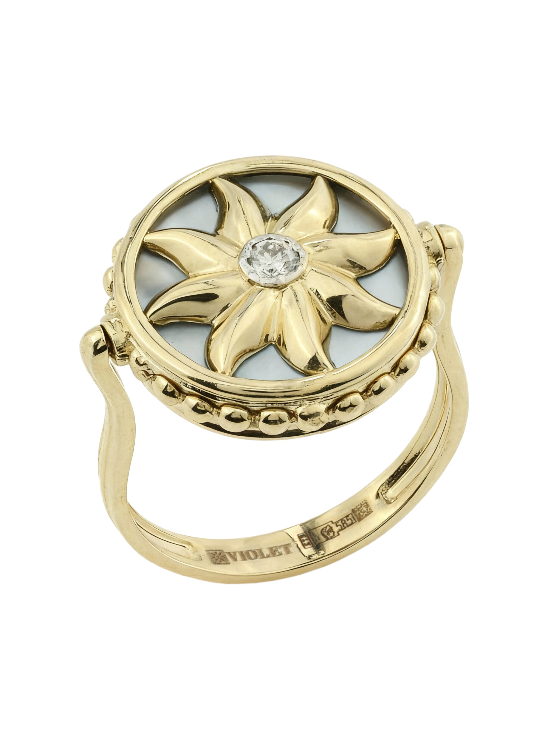 Кольцо из лимонного золота c бриллиантами, ониксом и перламутром