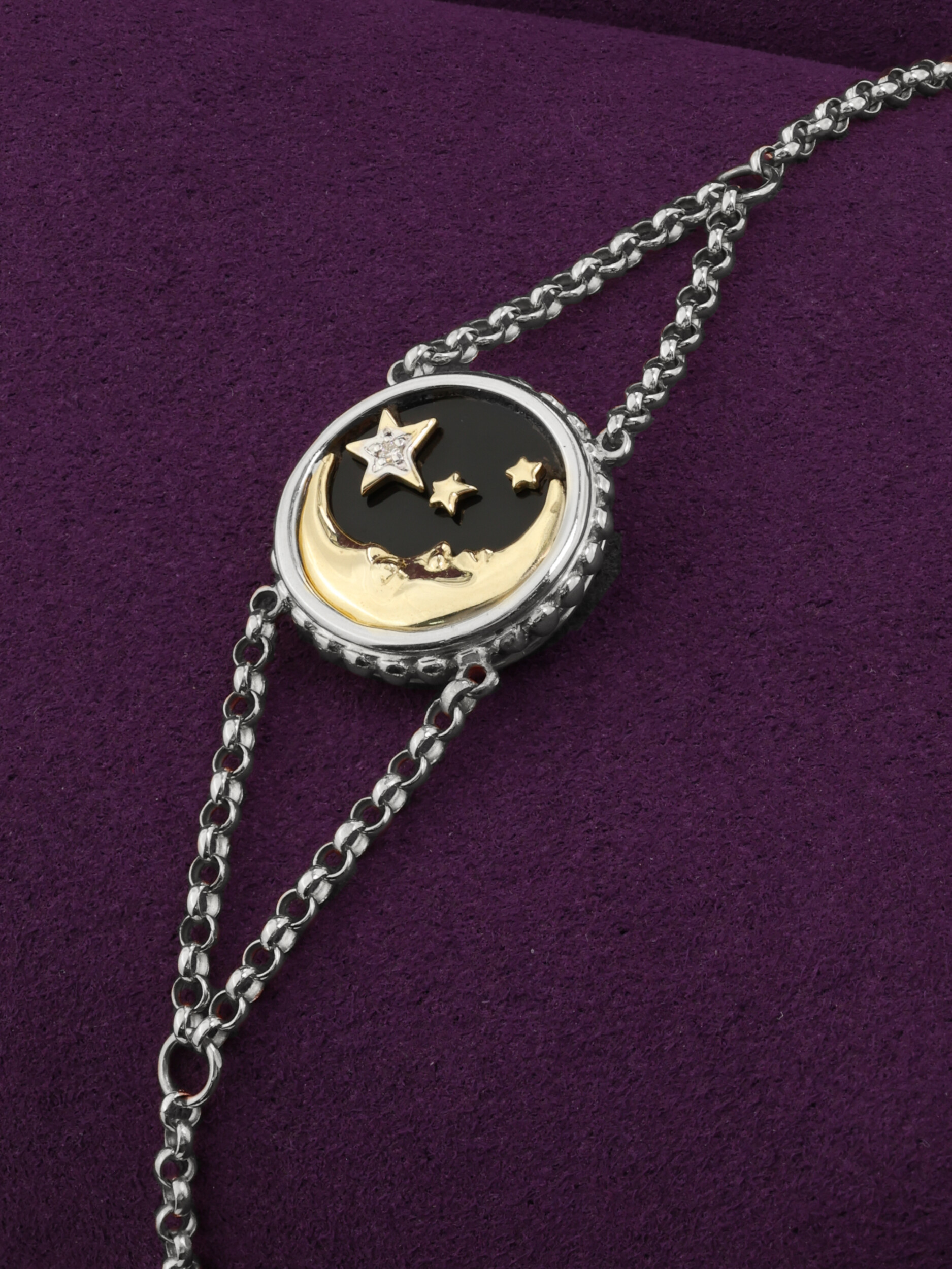 Браслет из белого золота c бриллиантами, ониксом и перламутром