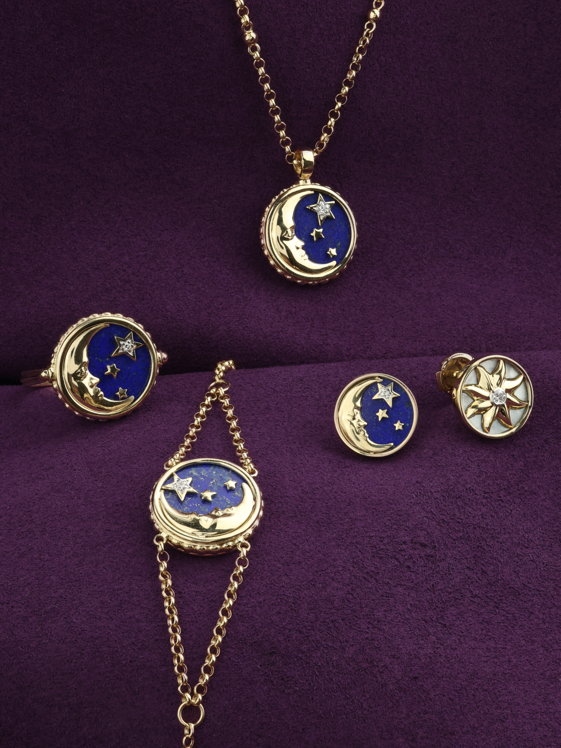 Колье из лимонного золота c бриллиантами, лазуритом и перламутром
