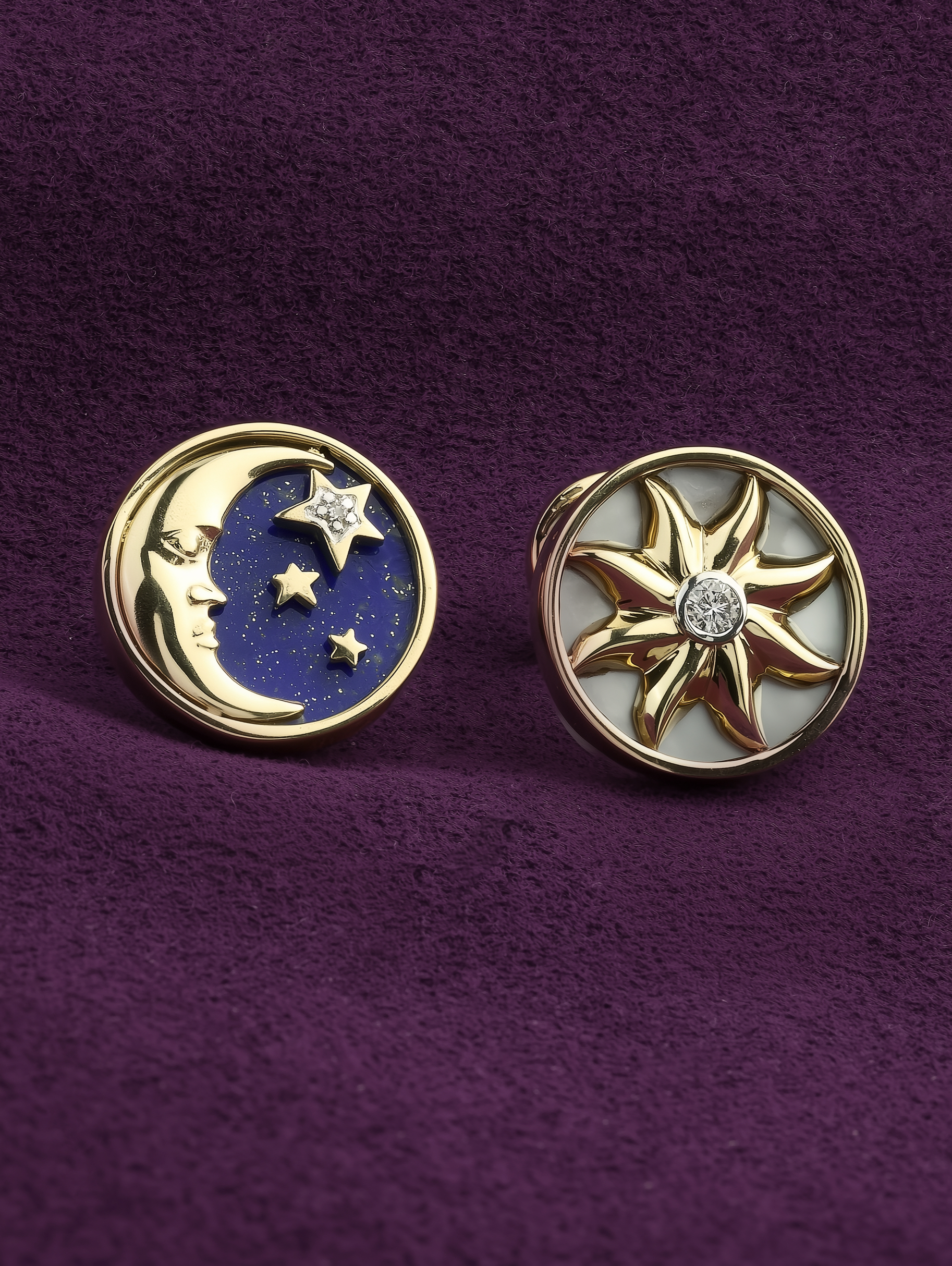 Серьги из лимонного золота c бриллиантами, лазуритом и перламутром