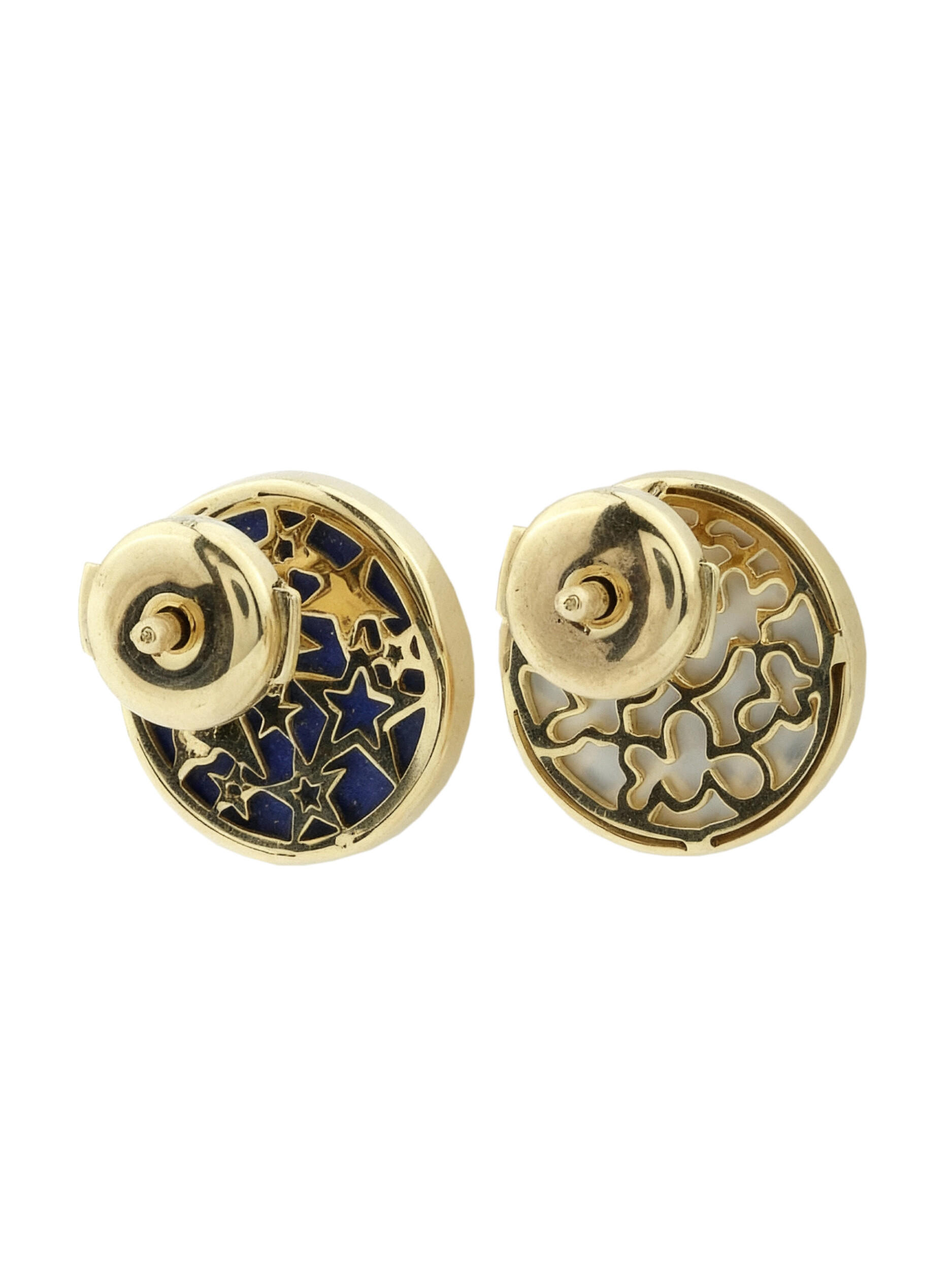 Серьги из лимонного золота c бриллиантами, лазуритом и перламутром